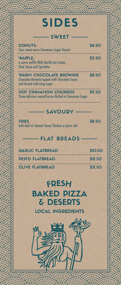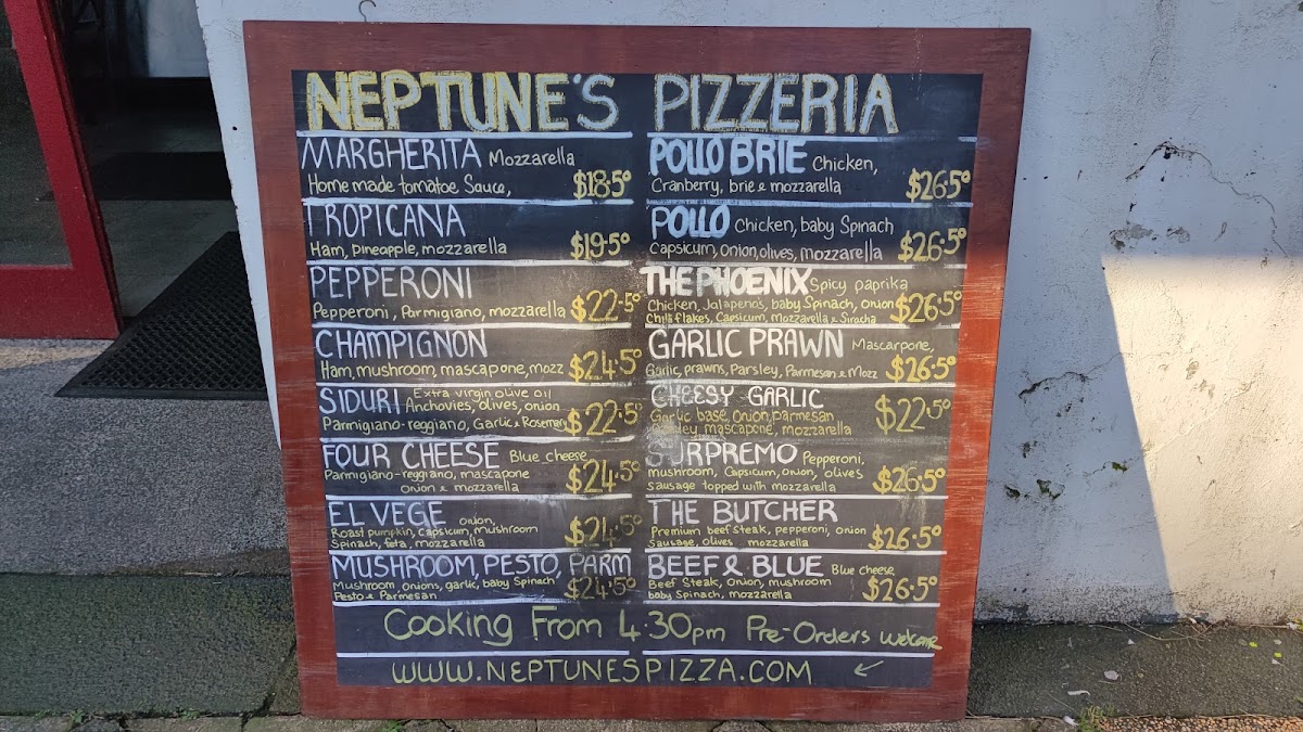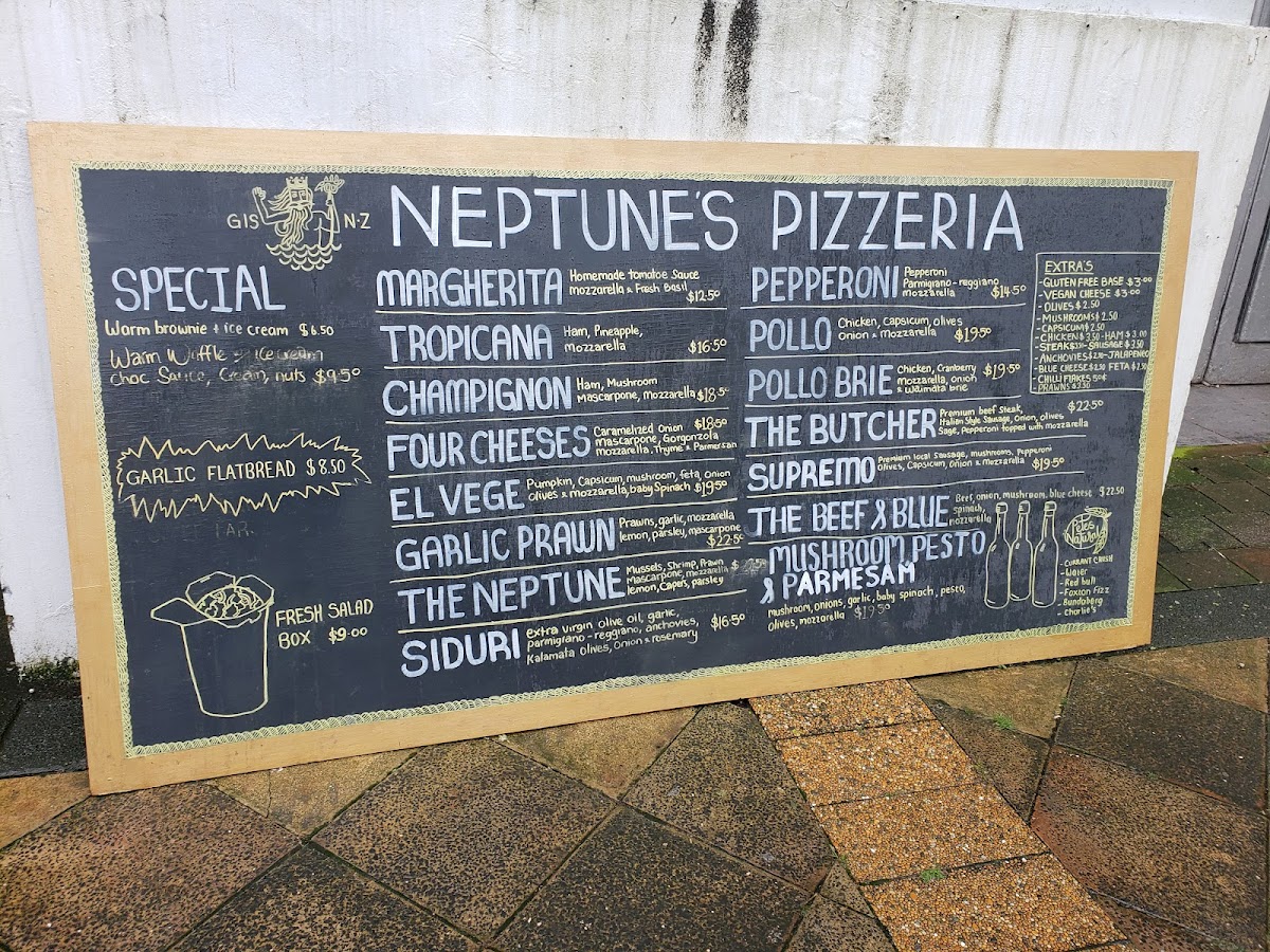 Neptune's Pizzeria in Gisborne offers a delightful range of dishes perfect for pizza lovers and those craving unique flavors. Among the standout options is the Beef and Blue Cheese pizza, combining the rich taste of beef with the boldness of blue cheese. For a sweet treat, the Cinnamon Sugar Doughnuts provide a perfect finish, while the Waffle and Ice Cream brings a comforting and indulgent option to the dessert menu. The savory options include the Garlic Prawn pizza, featuring plump prawns with a garlic kick, and the Four Cheeses pizza, a melt-in-your-mouth delight for cheese lovers. With a menu that caters to a variety of tastes, Neptune's Pizzeria ensures there's something for everyone to enjoy.